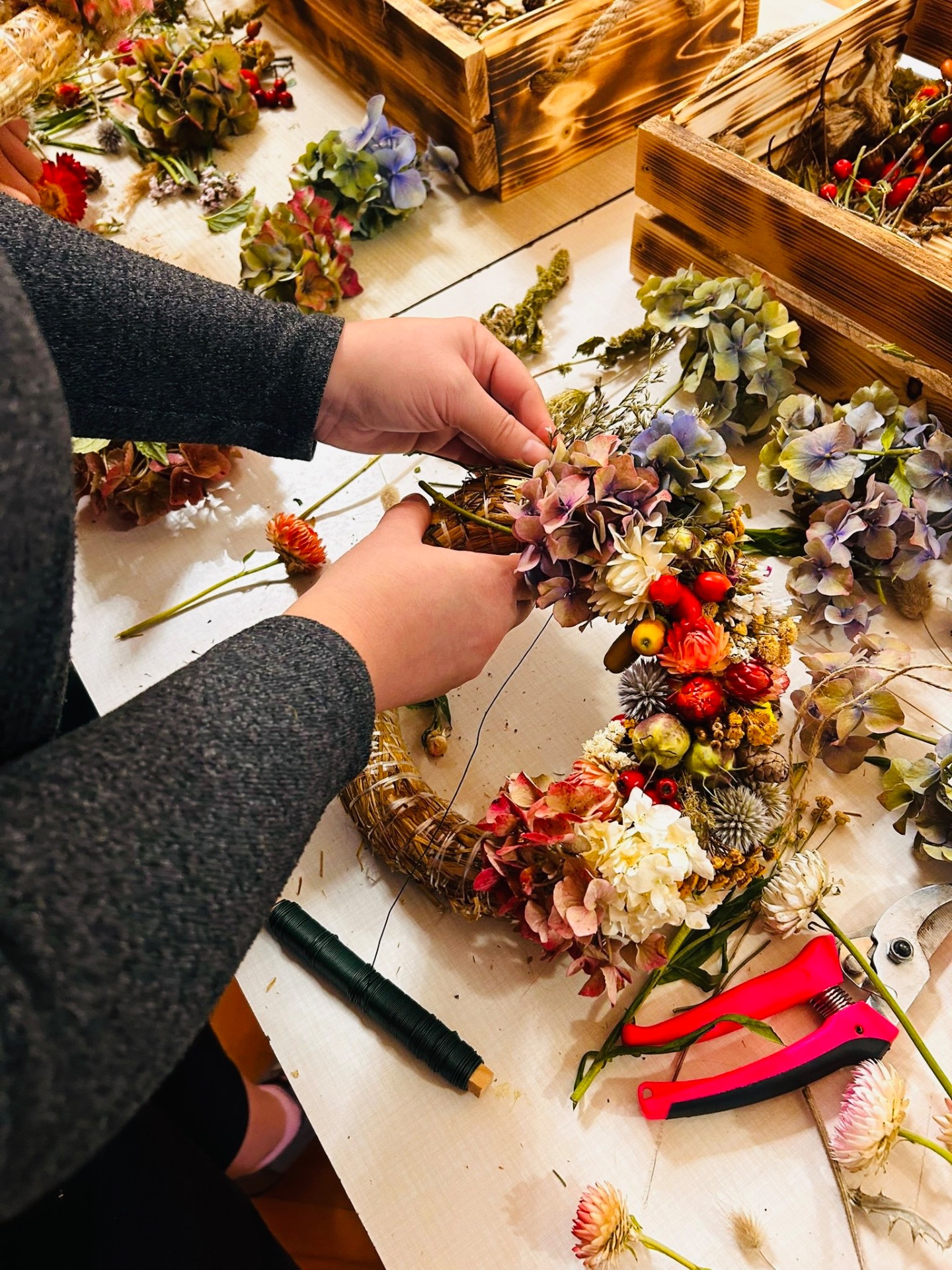 Veškerý materiál pochází výhradně z mé květinové farmy a po celou dobu workshopu jsem tu pro vás – pomohu, poradím a postarám se, abyste si odnesli nejen krásný výrobek, ale i příjemný zážitek.